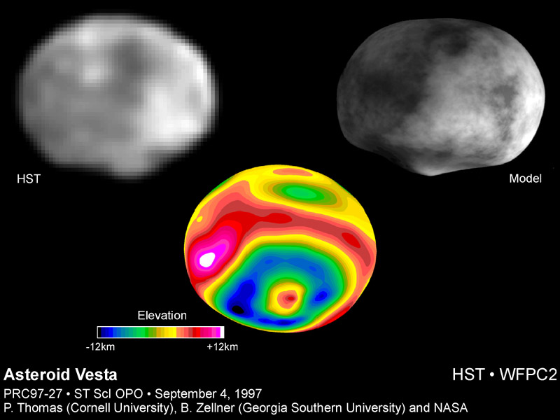 A NASA Hubble Space Telescope image of the asteroid Vesta, taken in