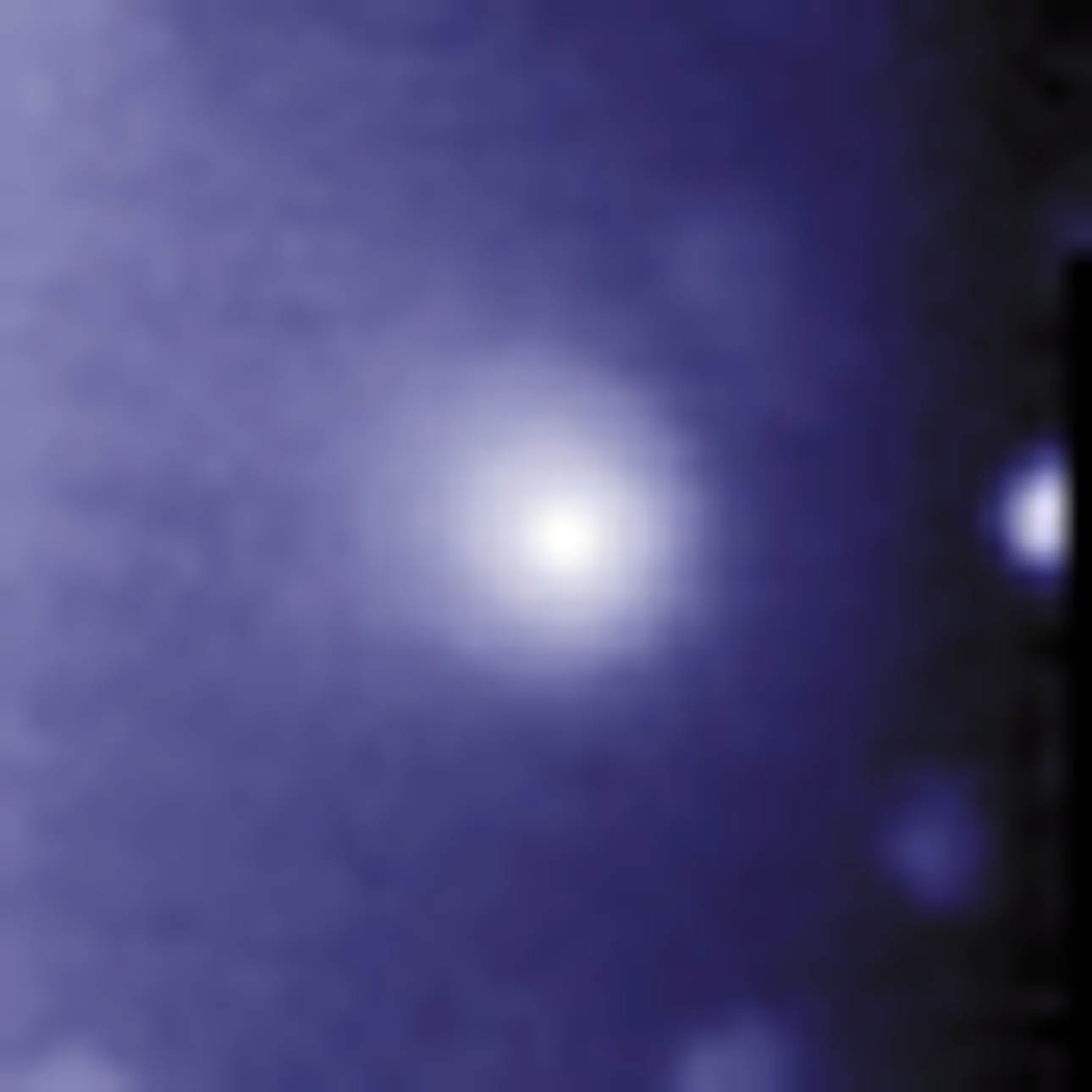 Hydrogen cloud around Comet LINEAR as observed by the SWAN instrument, almost a month before the comet disintegrated. The field of view is 21 million kilometres wide.