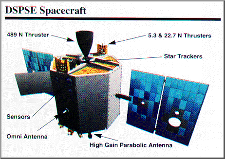 The Clementine mission was undertaken by the Department of Defense to test new technologies for defense and cilivian applications. The spacecraft was launched on January 25, 1994, and then began mapping the Moon. It left lunar orbit on May 3, 1994, after having taken 1.8 million images of the surface. Clementine headed for a flyby of asteroid 1620 Geographos, but the spacecraft suffered a failure that prevented it from obtaining images of this world. Clementine was one of the first of the new "faster, better, cheaper" planetary missions that use light-weight components, advanced technology, and rapid manufacturing techniques. The spacecraft incorporated a new type of spacecraft design and experimental instrumentation. The program took less than two years from initial concept to launch, far less than larger probes such as Galileo and Cassini. Clementine had five different imaging systems on-board. The UV/Visible camera had a filter wheel with six different filters, ranging from 415 nm to 1000 nm, and including a broad-band filter covering 400 to 950 nm. The Near Infrared camera also had a six-filter wheel, ranging from 1100 nm to 2690 nm. The Longwave Infrared camera had a wavelength range of 8000 to 9500 nm. The Hi-Res imager had a broad-band filter from 400 to 800 nm and four other filters ranging from 415 to 750 nm. The Star Tracker camera was also used for imaging. The program was undertaken by the Ballistic Missile Defence Organization (BMDO) with the assistance of NASA. The Lawrence Livermore National Laboratory provided light-weight imaging instruments. |
