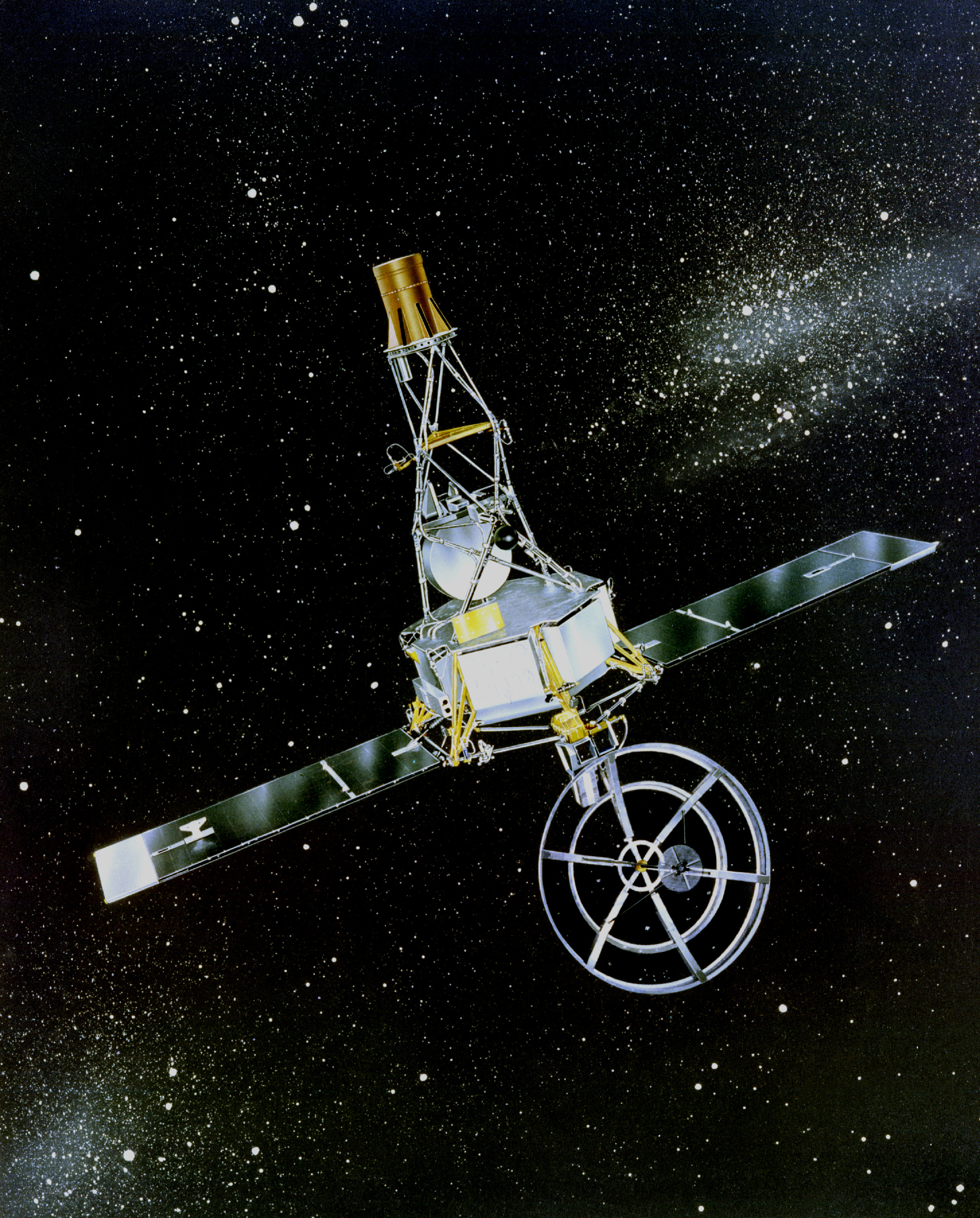 Mariner 2, the world's first successful interplanetary spacecraft, was launched August 27, 1962, and passed 34,916 kilometers (21,648 miles) from Venus on December 14, 1962. Contact was lost January 3, 1963, when the spacecraft was 86.9 million kilometers (53.9 million miles) from Earth. This digitally restored version of the Mariner 2 spacecraft is copyright 1998 by Calvin J. Hamilton. The original NASA image is copyright free. |