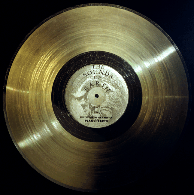On the chance that someone is out there, NASA approved the placement of a phonograph record on each of the Voyager spacecraft. The recording, called "Sounds of Earth" fits on a 12-inch, copper disc containing greetings from Earth people in 60 languages, samples of music from different cultures and eras, and natural sounds of surf, wind and thunder, and birds, whales and other animals. The record also contains electronic information that an advanced technological civilization could convert into diagrams, pictures and printed words, including a message from President Carter. |
