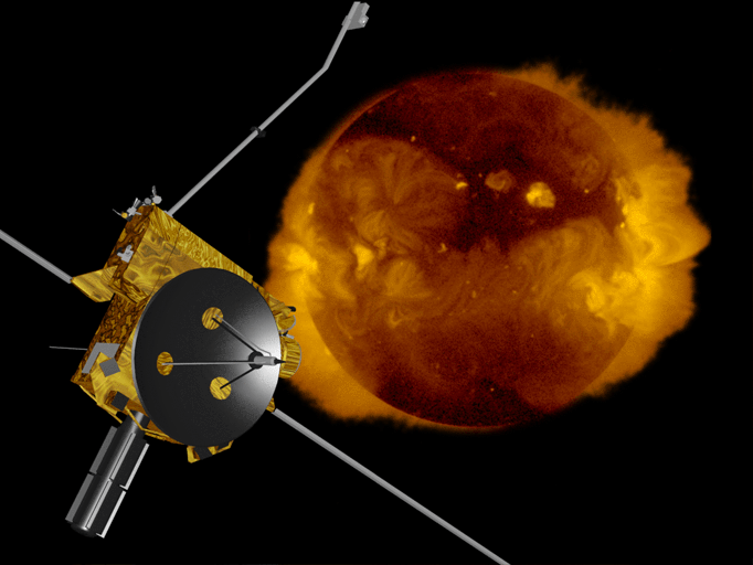 Scientists on the Ulysses mission -- the first spacecraft to explore the third dimension of space over the poles of the Sun -- found some surprising new discoveries about the polar regions of the Sun when the spacecraft passed over the regions in 1994 and 1995. Among them, the spacecraft revealed two clearly separate and distinct solar wind regimes with fast wind emerging from the solar poles. Scientists were surprised by observations of how cosmic rays make their way into the solar system from galaxies beyond the Milky Way. The magnetic field of the Sun over its poles turned out to be very different from previous expectations using ground-based observations. In addition, Ulysses found a beam of particles from interstellar space that was penetrating the solar system at a velocity of close to 50,000 miles per hour. On September 29, 1995, Ulysses completed its first solar orbit and began its voyage back out to the orbit of Jupiter, where it will loop around and return to the vicinity of the Sun in September 2000. At that time the Sun will be in a very active phase of its 11-year solar cycle and Ulysses will find itself battling through the atmosphere of a star that is no longer docile. |