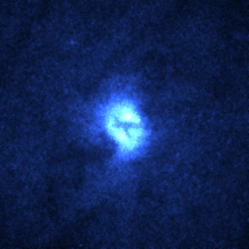 This image of the core of the nearby spiral galaxy M51, taken with the Wide Field Planetary Camera shows a striking, dark "x" silhouetted across the galaxy's nucleus. The "x" is due to absorption by dust and marks the exact position of a suspected black hole which may have a mass equivalent to one million stars like the Sun. The darkest bar may be an edge-on dust ring which is 100 light-years in diameter. The edge-on torus not only hides the black hole and accretion disk from being viewed directly from Earth, but also determines the axis of a jet of high speed plasma and confines radiation from the accretion disk to a pair of oppositely directed cones of light, which ionize gas caught in their beam. The second bar of the "x" could be a second disk seen obliquely, or possibly rotating gas and dust in M51 interacting with the jets and ionization cones. Image use statement at the time this image was obtained. All of the HST images available via WWW and ftp may be used without restriction as long as credit information accompanies the picture. Credit usually includes the principal scientist responsible for the data, AURA/STScI, NASA and/or ESA, the European Space Agency. Specific credit information may be found in the captions accompanying the images as plain text files. The captions are available via links from the Web pages as well as separate files in the gif directory on the ftp server. |