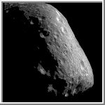 This mosaic of 2 images, showing a cratered region of Eros located at the elongated end of the asteroid, was taken at a resolution of about 21 meters per pixel. A few of the craters show brightness (albedo) patterns on their walls, where the top portion of the walls are brighter than the surrounding terrain. The floor and lower portion of the walls of these craters have patches that appear darker than the surrounding terrain. A few boulders are also visible in this region. Some shallow, subdued troughs can also be seen trending vertically down the lower part of the asteroid. (Mosaic of : 0127470894 and 0127470956) |