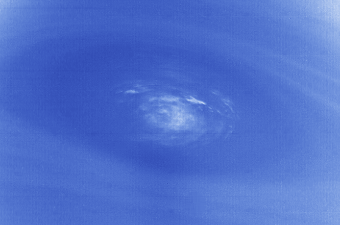 This image shows the Small Dark Spot, which is south of the Great Dark Spot. The small spot is thought to be a storm in Neptune's atmosphere, perhaps similar to Jupiter's Great Red Spot. This image is Copyright © by Calvin J. Hamilton. Any commercial/for-profit use of this image needs to be addressed to Calvin J. Hamilton. |