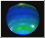 NASA's Hubble Space Telescope has been used to assemble a time-lapse color movie showing a full 16-hour rotation of the distant planet, Neptune. The movie, made from a series of Hubble observations over nine consecutive orbits, allows astronomers to track cloud motion on the planet. The clear images show Neptune's powerful equatorial jet stream, immense storms, and dark spot in Neptune's northern hemisphere, first identified last year by a Massachusetts Institute of Technology team using Hubble. The movie was made by a team of scientists led by Lawrence Sromovsky of the University of Wisconsin-Madison's Space Science and Engineering Center and were presented at the annual meeting of the Division of Planetary Sciences of the American Astronomical Society, in Tuscon AZ. The team combined observations from Hubble and NASA's Infrared Telescope Facility (IRTF) on Mauna Kea, Hawaii, to observe the distant planet in a variety of wavelengths, each providing a different set of information about Neptune's clouds, their structure, and how they circulate. Scientists can make more precise calculations of Neptune's wind speeds and directions, yielding refined information about the planet's dynamic weather system. |