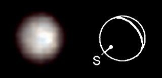 This image of Triton was taken by the Hubble Space Telescope's Faint Object Camera in September of 1995. It was created from a blue and ultraviolet image. The color is false but closely matches the color observed from voyager images. Triton appears to be roughly 10% darker than in images taken by the Voyager 2 spacecraft. Also note that the equatorial region is bright, but there is a darker region around the pole. With Triton's long seasons, the southern summer has been progressing, and the south pole has received increasing sunlight; thus, it is probable that much of the frost covering the region in 1989 has evaporated, some of which may have condensed at the equator (hence the bright region there). This image truly pushes the limit of HST's resolving power. The image is centered at roughly 215 degrees latitude.