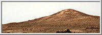 This is an example of a super-resolved image of the left most peak of "Twin Peaks". Twin Peaks are located southwest of the Mars Pathfinder landing site. They are approximately 30-35 meters tall. This image was created by combining a NASA AMES super-resolved image of the peak with a low resolution color image. Super-resolution works by combining information from multiple images of the same scene. In this case 42 individual images were used. For comparison purposes, path025.htm one of the 42 images used in the super-resolution process. The original image data was produced by NASA AMES. The final color composite was created by Calvin J. Hamilton. |