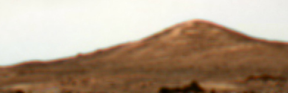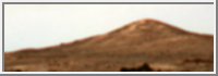 This image shows one frame from a super-resolved image of the left most peak of "Twin Peaks". Twin Peaks are located southwest of the Mars Pathfinder landing site. They are approximately 30-35 meters tall. This image appears quite blurred, but when it is combined with 41 other images, the result is shown in image path024.htm. The original image data was produced by NASA AMES. The final color composite was created by Calvin J. Hamilton. |