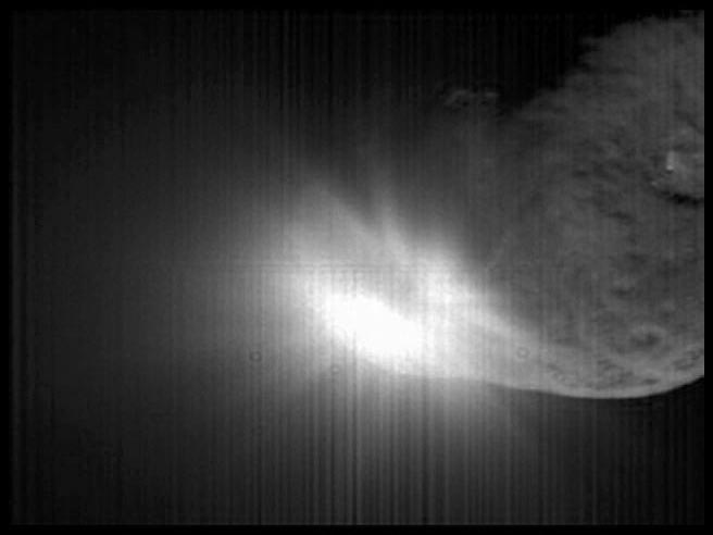 Quick Time Movie for PIA02134 High Resolution Impact This movie taken by Deep Impact's flyby spacecraft shows the flash that occurred when comet Tempel 1 ran over the spacecraft's probe. It was taken by the flyby craft's high-resolution camera over a period of about 40 seconds. The image has been digitally processed to enhance the view of the comet's nucleus. |