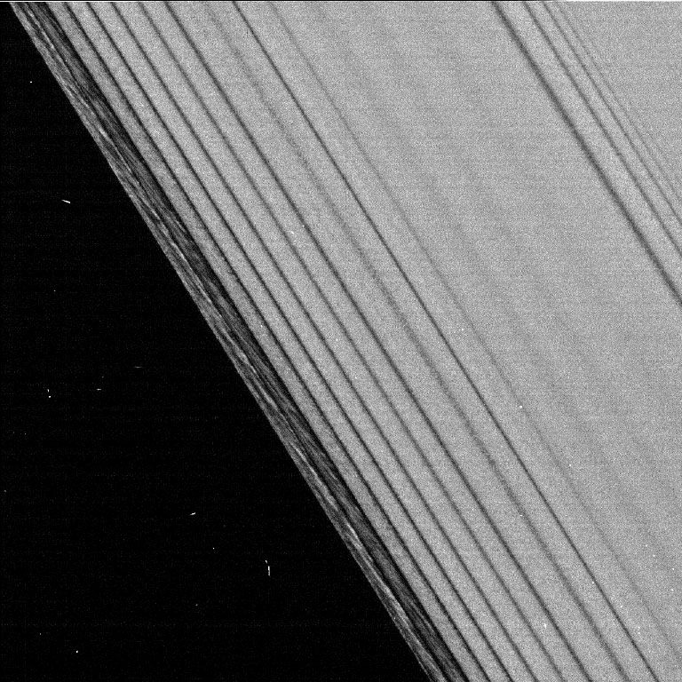This is one of the first images taken by the Cassini spacecraft after it successfully entered Saturn's orbit. It was taken by the spacecraft's narrow angle camera. |