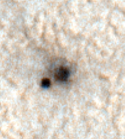 This shows a color image from Mars Reconnaissance Orbiter's High Resolution Imaging Science Experiment camera. It shows the Phoenix heat shield and bounce mark on the Mars surface. The Phoenix Mission is led by the University of Arizona, Tucson, on behalf of NASA. Project management of the mission is by NASA's Jet Propulsion Laboratory, Pasadena, Calif. Spacecraft development is by Lockheed Martin Space Systems, Denver. |
