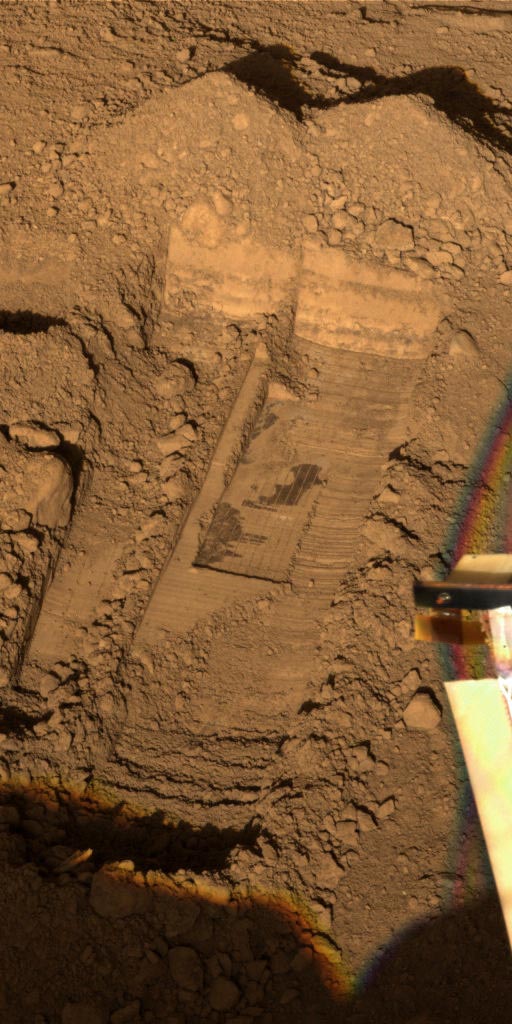 This image was acquired by NASA's Phoenix Mars Lander's Surface Stereo Imager on the 31st Martian day of the mission, or Sol 31 (June 26, 2008), after the May 25, 2008 landing. This image shows the trenches informally called "Snow White 1" (left), "Snow White 2" (right), and within the Snow White 2 trench, the smaller scraping area called "Snow White 3." The Snow White 3 scraped area is about 5 centimeters (2 inches) deep. The dug and scraped areas are within the diggiing site called "Wonderland." The Snow White trenches and scraping prove that scientists can take surface soil samples, subsurface soil samples, and icy samples all from one unit. Scientists want to test samples to determine if some ice in the soil may have been liquid in the past during warmer climate cycles. The Phoenix Mission is led by the University of Arizona, Tucson, on behalf of NASA. Project management of the mission is led by NASA's Jet Propulsion Laboratory, Pasadena, Calif. Spacecraft development is by Lockheed Martin Space Systems, Denver |