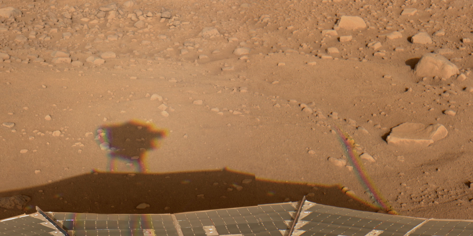 This image was acquired by NASA's Phoenix Mars Lander's Surface Stereo Imager (SSI) in the late afternoon of the 30th Martian day of the mission, or Sol 30 (June 25, 2008). This is hours after the beginning of Martian northern summer. SSI used its natural-color filters, therefore the color is the color you would see on Mars. The image shows shadows from the SSI (left) and from the meteorological station mast (right) stretching toward the east as the sun dropped low in the west. The Phoenix Mission is led by the University of Arizona, Tucson, on behalf of NASA. Project management of the mission is led by NASA's Jet Propulsion Laboratory, Pasadena, Calif. Spacecraft development is by Lockheed Martin Space Systems, Denver |