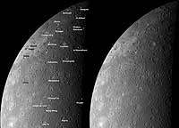 As MESSENGER approached Mercury, the NAC acquired images to create a mosaic of the entire planet. The mosaic shown here was created from about half of those images and is shown in an orthographic projection. This view is in contrast to the cylindrical equidistant map mosaic previously released. For this mosaic, an orthographic projection was used to create a view that has the perspective that one would see from deep space. Over three decades earlier, Mariner 10 viewed this portion of Mercury's surface, and the craters that were named on the basis of those images are labeled on this mosaic. The MESSENGER images of this same territory are allowing scientists to study Mercury's surface under different illumination conditions, and these complementary views provide new insight into the nature of the geologic features on Mercury.