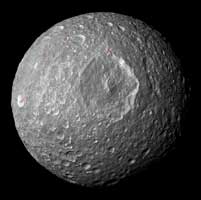 This mosaic, created from images taken by NASA's Cassini spacecraft during its closest flyby of Saturn's moon Mimas, looks straight at the moon's huge Herschel Crater and reveals new insights about the moon's surface. Bright-walled craters, with floors and surroundings about 20 percent darker than the steep crater walls, are notable in this view. Mimas' original surface, like the surfaces of most of the other major Saturnian moons without atmospheres, is not pure ice but contains some dark impurities. Herschel Crater (130 kilometers, 80 miles wide) and some of the smaller craters seen in this mosaic show relatively dark markings along the lower portion of their crater walls (marked in green in the annotated version of the image). Cassini scientists interpret this darkening as evidence for the gradual concentration of impurities from evaporating icy materials in areas where the dark impurities slide slowly down the crater wall. There, bright ice is baked away by the sun and the vacuum of space. At Herschel, the edge where the darker regions contact the crater floor is interrupted by an extensive hummocky area. Scientists believe the hummocky texture came from the flow of melted ice that occurred during the impact that created the crater. That melt filled the bottom of the crater around the central peak. Dark streaks are seen making their way down the sides of some craters (marked red in the annotated version), often originating from pockets of dark contaminants embedded just below the rim of the crater wall. The pockets themselves likely represent small, pre-existing, dark-floored craters that were buried by the blanket of material that was thrown out from the newer impact that created the crater rim. The material from a newly exposed dark layer eventually moves downslope and forms a streak. Streaks are sometimes seen starting from the floors of smaller, dark-floored craters perched along rims of larger craters. The interior of Herschel Crater is significantly less cratered than the continuous blanket of ejected material that extends radially outward from its rim. The violent meteor impact that excavated Herschel blasted pulverized debris, including massive chunks of ice, upward. The fallback of this ejected material over the crater rim created a thick debris blanket and dotted it with secondary craters. The presence of a fluid pool of melted material on the crater floor, which solidified after the debris fell, probably explains the relative absence of craters on Herschel's floor. These are common processes that should occur on bodies without atmospheres throughout the solar system. They may be accentuated on Mimas because of the large size of Herschel in comparison to Mimas' size. Cassini scientists also continue to study a color anomaly on Mimas. See PIA12572 and PIA06257 to learn more. Cassini came within about 9,500 kilometers (5,900 miles) of Mimas during its flyby on Feb. 13, 2010. This mosaic was created from seven images taken that day in visible light with Cassini's narrow-angle camera. An eighth image, taken with the wide-angle camera on the same flyby, is used to fill in the lower right of the mosaic. The images were re-projected into an orthographic map projection. This view looks toward the hemisphere of Mimas that leads in its orbit around Saturn. Mimas is 396 kilometers (246 miles) across. This view is centered on terrain at 10 degrees south latitude, 125 degrees west longitude. North is up. The view was obtained at a distance of approximately 30,000 kilometers (19,000 miles) from Mimas and at a sun-Mimas-spacecraft, or phase, angle of 27 degrees. Image scale is 180 meters (600 feet) per pixel. |