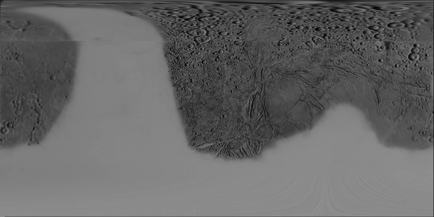 This cylindrical map of Enceladus was produced by the USGS from Voyager spacecraft image data. |