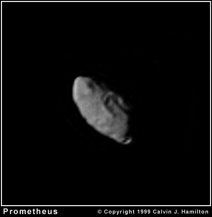 This image of Prometheus was acquired by the Voyager 2 spacecraft on August 25, 1981. |