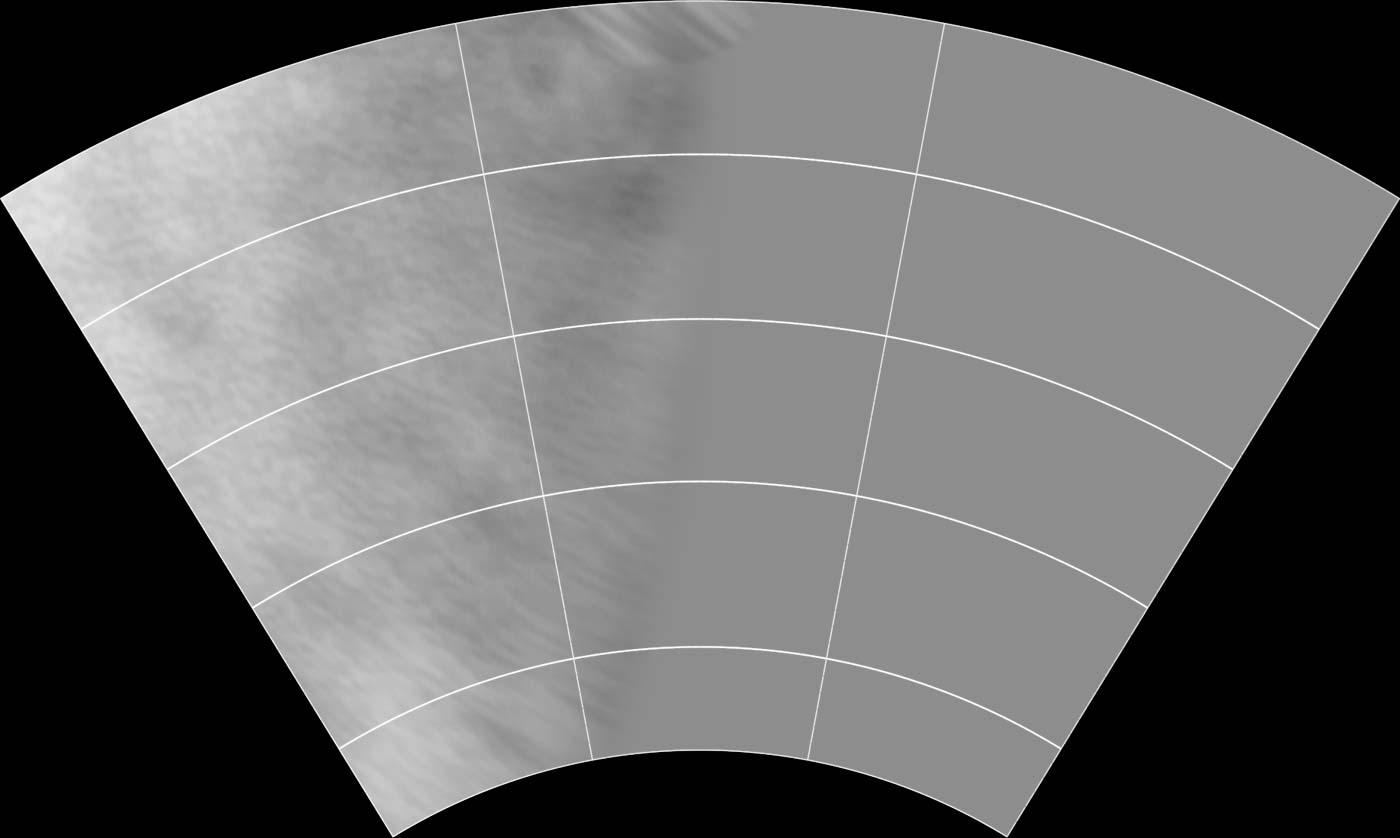 This map of Rhea is in Lambert Conformal Conic Projection and covers longitudes 180 to 90 degrees and latitudes -21 to -66 degrees. |