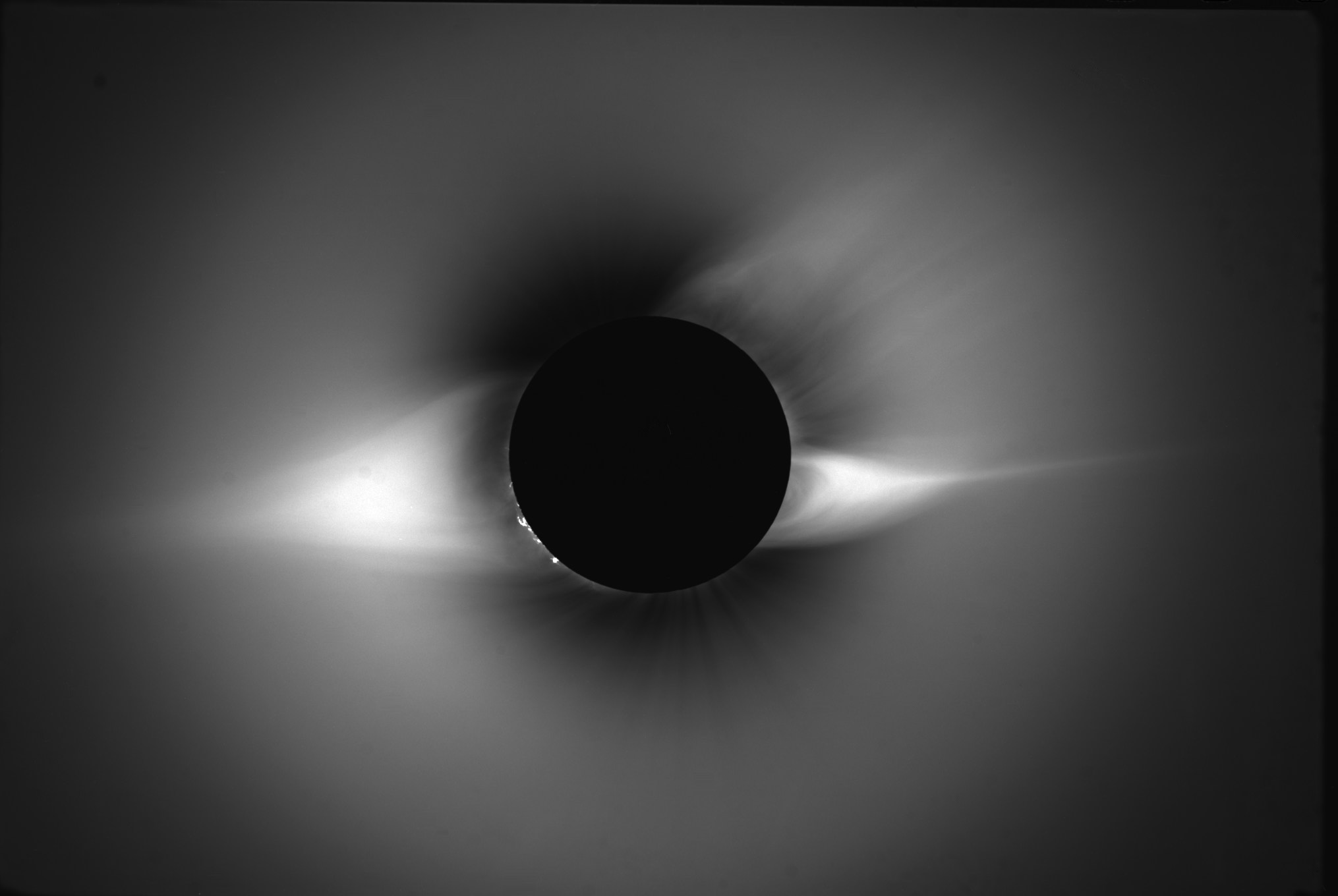 This picture of the 1994 solar eclipse was taken November 3, 1994, as observed by the High Altitude Observatory White Light Coronal camera from Chile. Courtesy, High Altitude Observatory, National Center for Atmospheric Research (NCAR), Boulder, Colorado, USA. NCAR is spnsored by the National Science Foundation. |