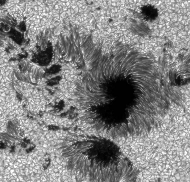 Large field-of-view image of sunspots in Active Region 10030 observed on 15 July 2002.