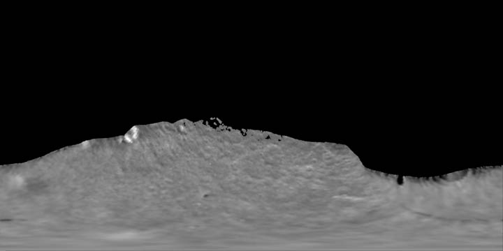 This cylindrical map of Umbriel was produced by the USGS from Voyager spacecraft image data. |