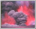 This video clip was taken from "Understanding Volcanic Hazards", © 1995, International Association of Volcanology and Chemistry of Earth's Interior (IAVCEI). The following was taken from the video: An exploding volcano blasts molten rock and ash into the air with tremendous force. The heaviest fragments fall back to the ground usually within a few kilometers of the vent but the dust size ash fragments continue to rise into the air forming a hugh billowing cloud of ash. This is the most common type of activity produced by explosive eruptions. |