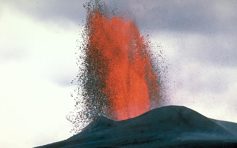 This picture shows a lava fountain taken of the Pu`u `O`o cinder and spatter