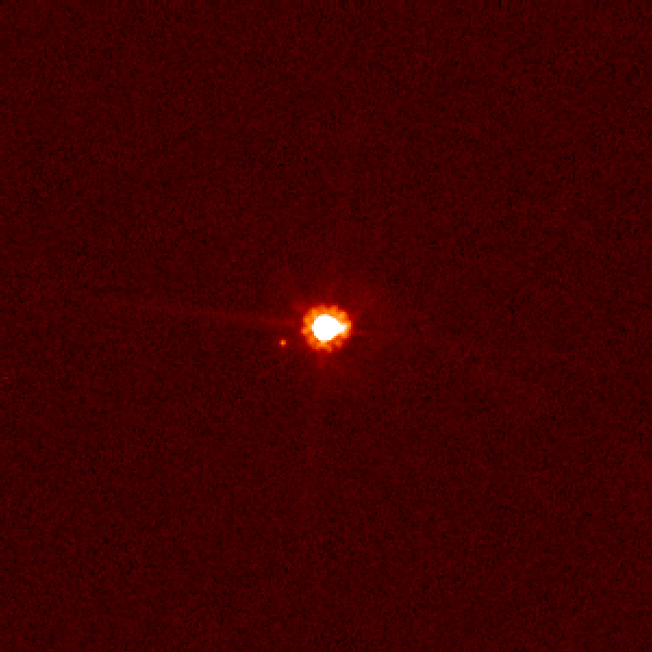 This is an image of the dwarf planet Eris (center) and its satellite Dysnomia (at 9 o'clock position) taken with NASA's Hubble Space Telescope on Aug. 30, 2006. Hubble observations were obtained on Dec. 3, 2005 and Aug. 30, 2006 using the Advanced Camera for Surveys. The Hubble images were combined with images from the Keck telescopes taken on Aug. 20, 21, 30, and 31 to measure the satellite's orbit and calculate a mass for Eris, which is the largest dwarf planet in the solar system. Credit: NASA, ESA, and M. Brown (California Institute of Technology) |