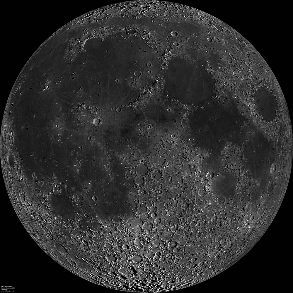 For two weeks in mid-December 2010, the LRO spacecraft remained nadir looking (straight down) so that the LROC Wide Angle Camera (WAC) could acquire ~1300 images, allowing the LROC team to construct this spectacular mosaic. As the Moon rotated under LRO's orbit, the ground track progressed from east to west (right to left in this mosaic), and the incidence angle at the equator increased from 69° to 82° (at noontime the incidence angle is 0°). |