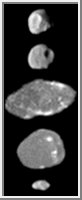 shaped satellites. The images resolve surface features as small as 2 kilometers