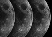 This brief 3-frame movie was made from 3 narrow angle ISS images. From left to right, they show the Moon in the green, blue and ultraviolet regions of the spectrum in 40 msec, 60 msec, and 80 msec exposures, respectively. All three images have been scaled so that the brightness of Crisium basin, the dark circular region in the upper right, is the same in each image. The spatial scale in the blue and ultraviolet images is 2.3 km/pixel. The original scale in the green image was 4.6 km/pixels. It has been enlarged for display to the same scale as the other two. (Courtesy of Cassini Imaging Team/University of Arizona/JPL/NASA)