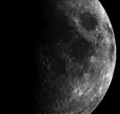 The high-tech camera system aboard the Saturn-bound Cassini spacecraft, snapped several pictures as it approached the Moon on its fly-by of planet Earth. The pictures were taken about 80 minutes before closest approach, on August 17, 1999, from a range of about 234,000 miles. The 80-millisecond exposure from the spacecraft's narrow-angle camera shows lunar features as small as about 2.3 kilometers (1.4 miles) across.