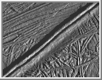 This close-up view of the icy surface of Europa was obtained on December 20, 1996, by the Solid State Imaging system on board the Galileo spacecraft during its fourth orbit around Jupiter. The view is about 13 kilometers by 18 kilometers (8 miles by 11 miles) and has a resolution of 26 meters (28 yards). The Sun illuminates the scene from the east (right).
