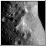 visible. Heavy cratering has pockmarked the irregular