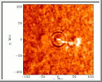 These are a sequence of images taken from the movie of the July 9, 1996 solar quake. The solar flare that initiates the shock wave is shown in the first picture. Concentric rings spread out and get larger and large in the following pictures.