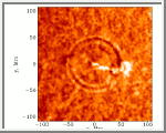 This is a movie of the July 9, 1996 solar quake. The images were made using the Michelson Doppler Imager onboard the Solar and Heliospheric Observatory (SOHO) spacecraft, a joint European Space Agency/NASA project. The white, feathery object in the center is the solar flare that caused the quake. A solar flare is an explosion in the atmosphere of the Sun, caused by the tearing and reconnection of strong magnetic fields. Although moderate in size, this flare released an enormous amount of energy. The energy released is equal to completely covering the Earth's continents with a yard of dynamite and detonating it all at once. Some of this energy was transferred to the solar surface by high speed electrons traveling within magnetic flux tubes, invisible tubes of magnetic energy. They produced X-rays, microwaves and shock waves that heated the solar surface. These shock waves are the solar quake, and can be seen as concentric rings spreading outward from beneath the flare, much like ripples spreading from a rock dropped into a pool of water. The flare-generated solar quake contained about 40,000 times the energy released in the great earthquake that devastated San Francisco in 1906. The amount of energy released was enough to power the United States for 20 years at its current level of consumption. (Courtesy Dr. Alexander Kosovichev/Stanford University, the European Space Agency, and NASA - Animation produce by Calvin J. Hamilton)