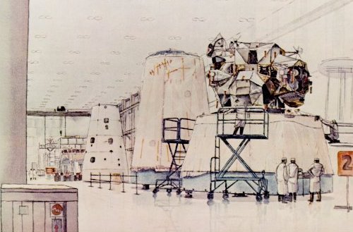 Tom O'Hara, CHECKING THE COMMAND MODULE, acrylic on paper |