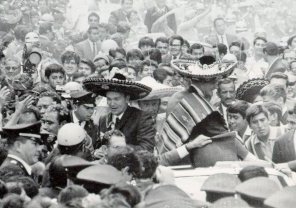 | Sombreros replaced space helmets when crowds stalled a motorcade in Mexico City. In a 45-day world tour aboard Air Force One to 27 cities in 24 countries, the Apollo 11 astronauts received exhausting acclaim. |