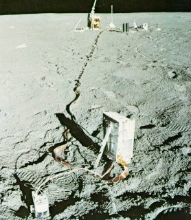 | The Laser Ranging Retroreflector (LRRR) is a completely passive array of small fused-silica corner cubes that reflect incident light precisely back toward its sources. When the source is a pulsed ruby Laser at a large telescope, the distance from the LRRR to the ground station can be routinely measured within 6 inches. The three LRRR arrays on the Moon permit long-term studies of subtle Earth and Moon motions. |