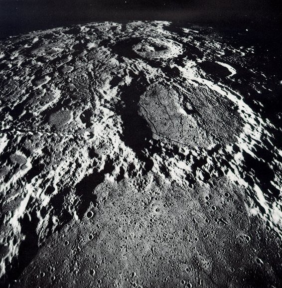 | A landing site not visited, the crater Alphonsus is shown in this Apollo 15 mapping-camera picture. A point near the right edge of the crater floor in this southward-looking view was once the leading candidate for our landing site in Apollo 17. However, the need for greater geologic and geographic variety resulted in final selection of Taurus-Littrow instead. Our regret is that both could not have been explored. |
