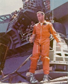 | A destroyer picked up Glenn's capsule in 17 minutes. He skinned his knuckles blowing the hatch, and said that "it was hot in there". He had lost weight but doctors' exhaustive tests showed no adverse effects from his 4-hour 22-minute flight. City after city feted Glenn, and his capsule was put in the Smithsonian Institution near the Wright brothers' airplane. |
