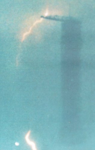 | The lightning bolt that struck Apollo 12 aloft also hit the crane an platform of the mobile launcher. |