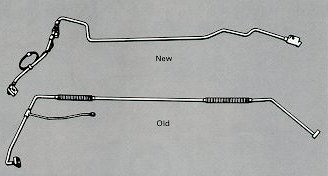 | A fiery exhaust plume trails Apollo 6 during the first stage of launch. Second-stage burn was marred by premature shutdown of three of the five J-2 engines, causing the craft to enter an elliptical rather than a circular orbit. Many months of technical detective work identified the bellows in one liquid hydrogen fuel line (bottom) as the culprit. In flight the bellows had flexed excessively, cracked, and leaked fuel. A redesigned fuel line substituted specially placed bends for the bellows. |