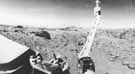 This image was initiated 6 min after touchdown. The camera continued to scan the landscape for 9 min, at which time it automatically returned to the stowed position. As we viewed the picture, building from left to right, our attention was first drawn to successful deployment of the meteorology boom seen at the upper left. Drifts of sediment are visible in the midfield. A succession of ridges and depressions lead to the distant horizon.
