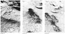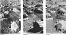 [124-127] Acquisition of soil samples for analysis within the Lander was the single most demanding Viking activity, requiring the integrated contributions of many scientists and engineers. In the course of the mission the surface sampler arm was deployed many times; numerous trenches were dug and many samples were delivered to instruments within the spacecraft. Figures 154 and 155, which show the extended sampler arm on Viking 2 from the vantage point of both cameras, capture the essence of a sampling operation. Figure 156 shows the same region after several trenches have been dug and one rock pushed a short distance. The trenches are visible at the far left and far right. The displaced rock, nicknamed Mr. Badger after a character in Wind in the Willows, is near the middle of the picture. Mr. Badger is seen in its original position in figure 155. We were fortunate that martian surface materials were unconsolidated and relatively easy to shovel. Figures 157 through 161 show the progressive excavation of an area at the Lander 1 site known as Sandy Flats. Over a period of 10 months, more than a dozen individual trenching operations at Sandy Flats were completed. After it had been determined that the upper soil was biologically sterile, some scientists speculated that organisms might exist deeper in the soil where they would be protected from deadly ultraviolet radiation. The thesis was tested by repeatedly digging at the same spot until a hole more than 15 cm in depth was excavated (fig. 161). In one sense this was a sophisticated engineering task, requiring complicated sequences of sampler arm commands. In another sense it was reminiscent of childhood exercises with sand and shovel. At any rate, it was to no avail. Samples yielded negative biological results. Figures 162 through 164 record sampling of a duricrust layer at the Lander 2 site. Figures 162 and 163 are two views of the area before sampling. Because this small exposure of duricrust was nestled between large blocks, engineers were concerned that the sampler arm might be damaged by inadvertently striking one of the boulders. Stereoscopic analysis of picture pairs indicated that the duricrust was accessible, but that the arm would come very close to several potentially disabling obstacles. Our nervousness was dispelled only when we received a picture showing the virtual obliteration of the duricrust patch (fig. 164). In the search for martian organisms it was suggested that material from under rocks might be an attractive environment for organisms (protected from the sterilizing effects of the solar ultraviolet). Figures 165 through 167 show a boulder (nicknamed "Notch Rock") at the Lander 2 site that was successfully nudged to one side. Figure 165 is the "before" picture. Figure 166 shows the sampler arm midway through its pushing operation. Figure 167 shows the completed activity. The rock has been moved approximately 3 cm. A small depression is visible in front of the rock where it had previously been partially buried by surface material. Again, no organisms were found. The decision to push a rock with the relatively fragile sampler arm was preceded by many days of careful analysis and consideration of potential risks. During a long meeting at which we discussed the relative merits of several candidate rocks, a foreign scientist, visiting JPL, sat briefly in the back of the room. Already impressed with the exotic spaceage technology in evidence throughout the laboratory, a puzzled frown crossed his face as he listened to a group voting for a favorite rock. | ||