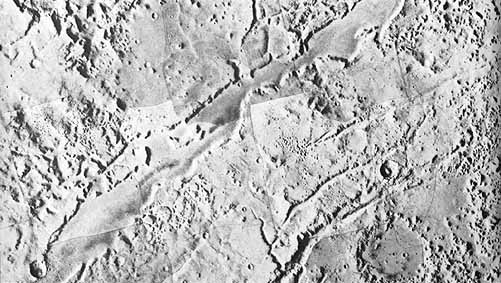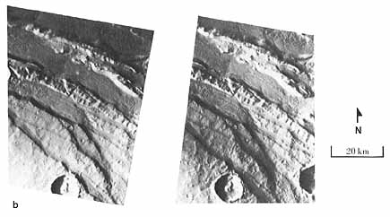 Mare ridges are other possible examples of deformational features. Such ridges are common on the sparsely cratered plains of Lunae Planum, Syria Planum, Hesperia Planum, and around the site of Viking Lander 1 in Chryse Planitia. In fact, Viking Lander 1 is believed to have landed on a ridge crest. Similar ridges have been studied intensively on the Moon and are considered to be the surface expression of reverse or thrust faults, which formed either contemporaneously with deposition of the lunar mare rocks, or some time [64] after, as a result of accommodation of the Moon's surface to the lava deposition. The ridges on Mars have a striking resemblance to those on the Moon and are probably of similar origin. Terrestrial analogs have not been found, however, and their origin remains uncertain.