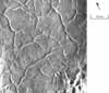 Most of the cratered plains in the northern latitudes of Mars exhibit a polygonal pattern of fractures for which there is no terrestrial analog. Individual polygons average approximately 10 km across and extend uniformly in all directions. Ice wedging and contraction by cooling have been suggested as possibilities, but no completely satisfactory explanation has yet been found.