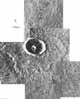 Hamelin Crater. Hamelin Crater, only 90 km northeast of the original landing site selected for Viking Lander 1 in Chryse Planitia, shows the raised edge or rampart around the ejecta blanket that is characteristic of many craters in this area. [77/08/10/180701; 20°N, 33°W] |