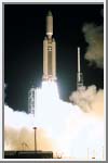 A seven-year journey to the ringed planet Saturn begins with the liftoff of a Titan IVB/Centaur carrying the Cassini orbiter and its attached Huygens probe. Launch occurred at 4:43 a.m. EDT, October 15, 1997 from Launch Complex 40 on Cape Canaveral Air Station. (Courtesy Kennedy Space Center)